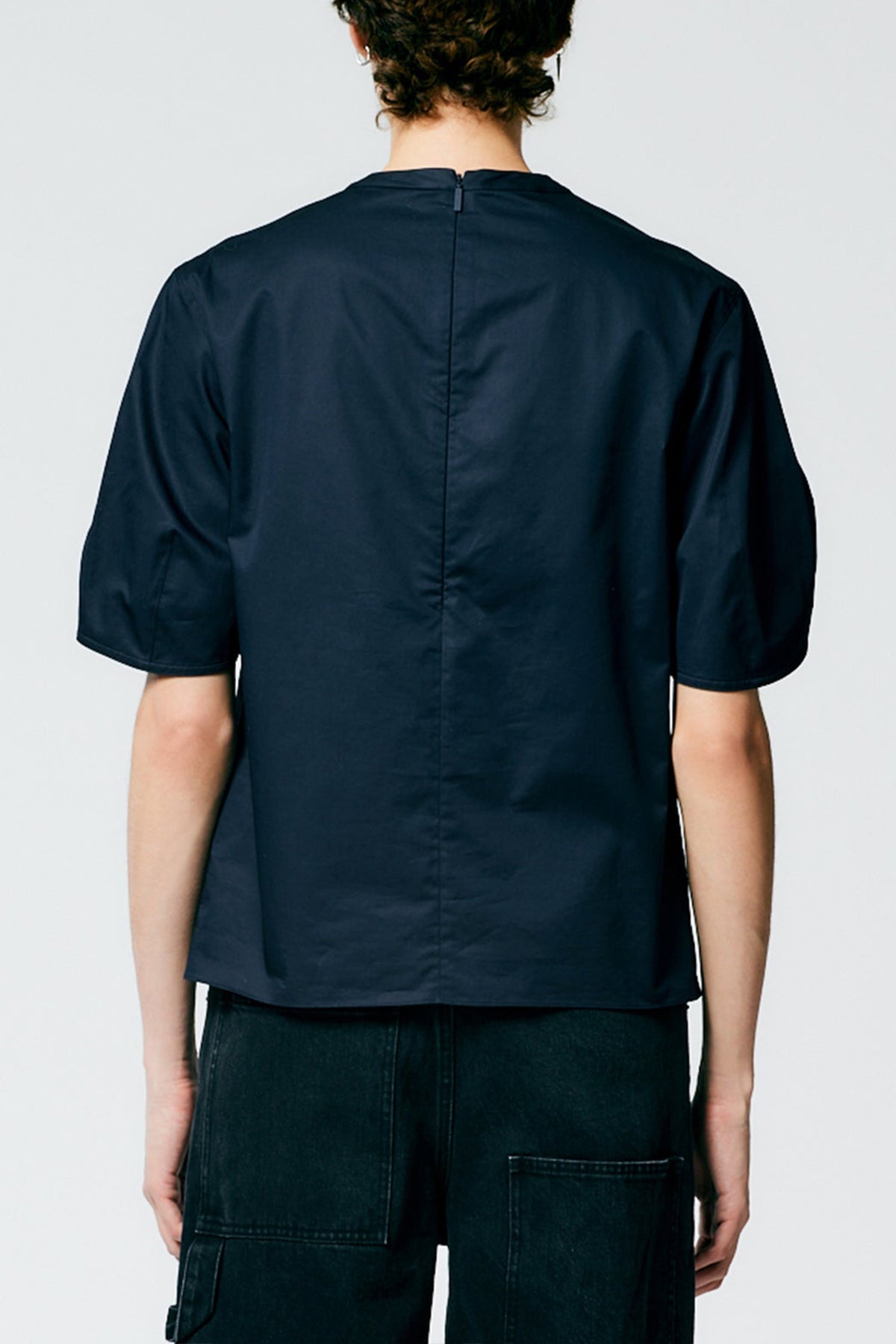 Eco Poplin Sculpted Sleeve Top With Cut Out Detail in Dark Navy