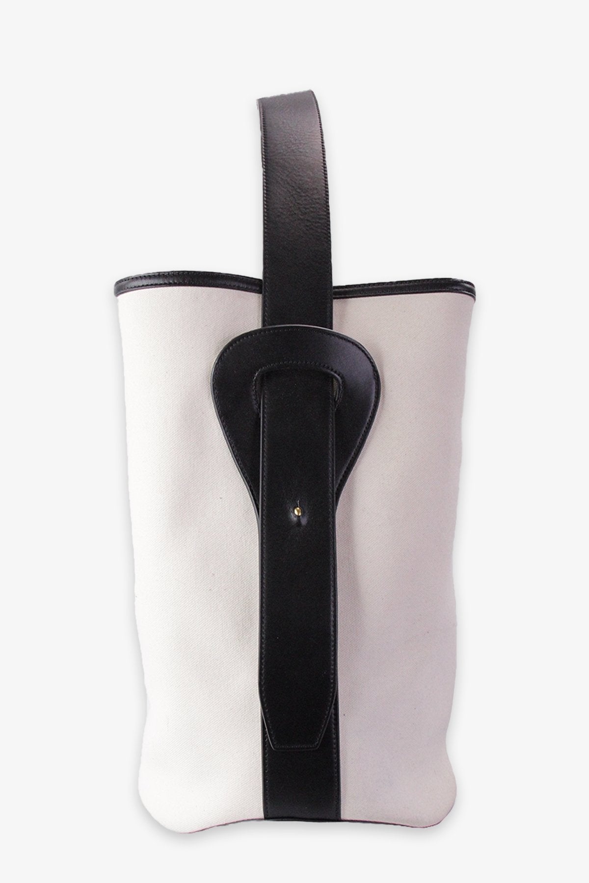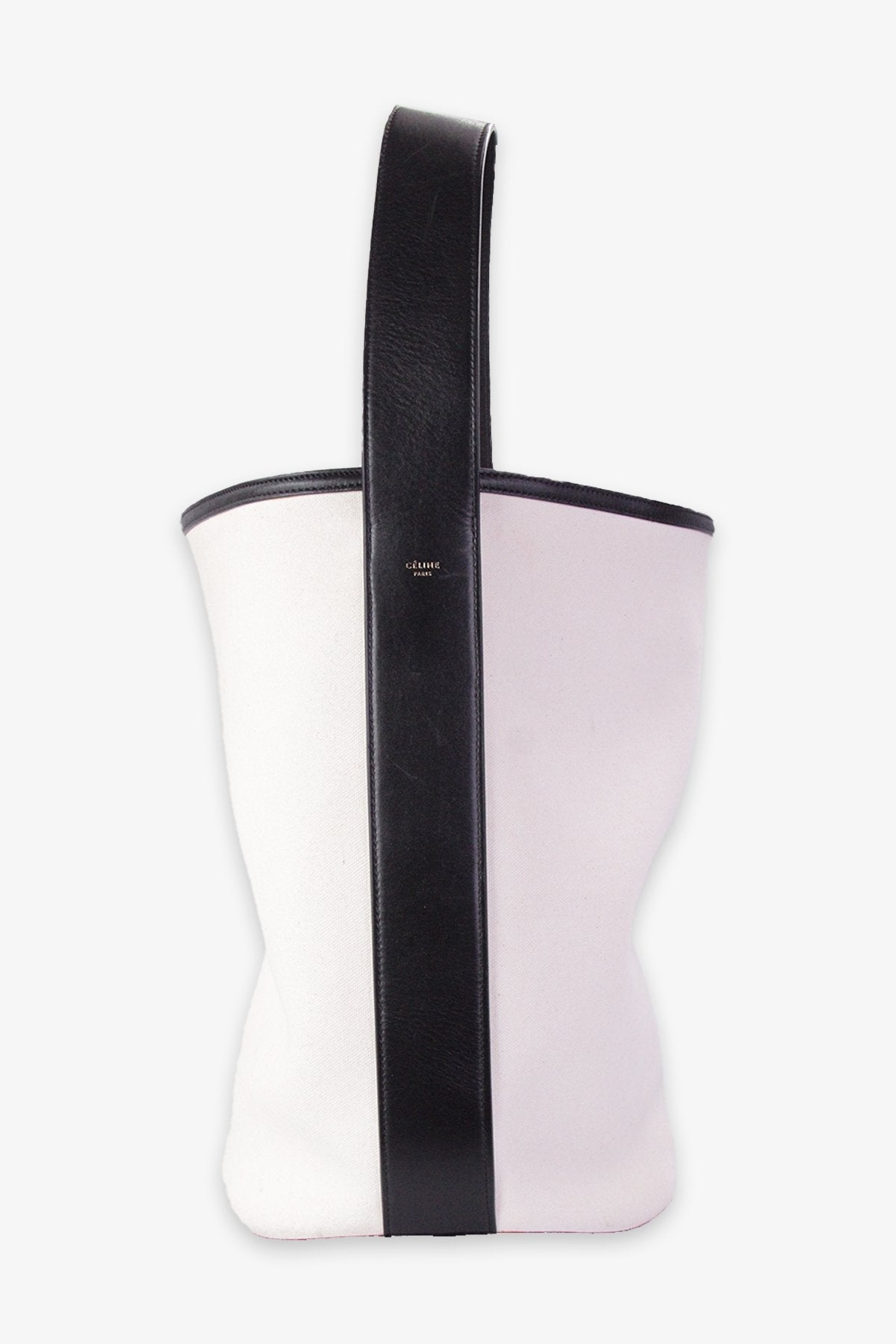 Celine Beige Canvas Shoulder Bag with Black Leather Strap - shop-olivia.com