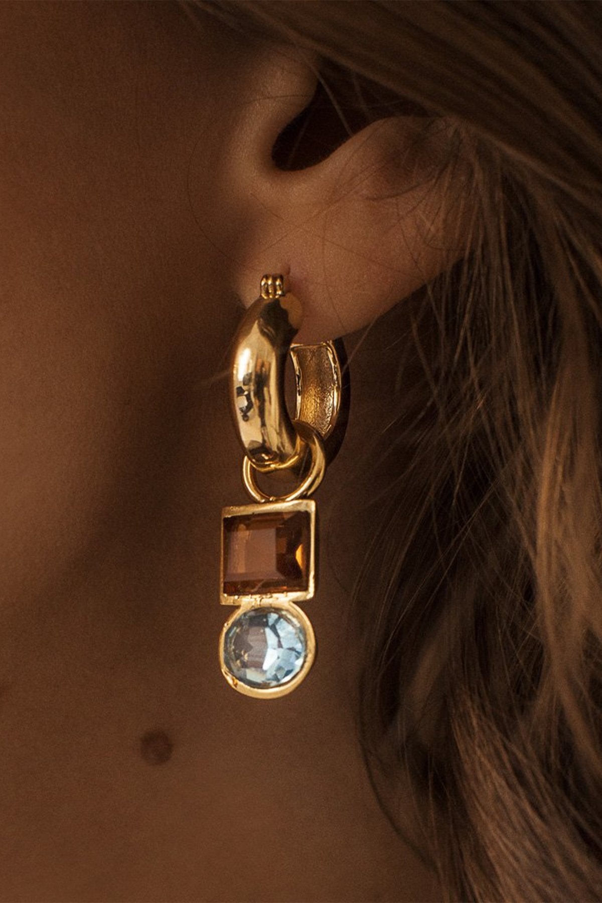 - Gold-plated brass, aquamarine, topaz