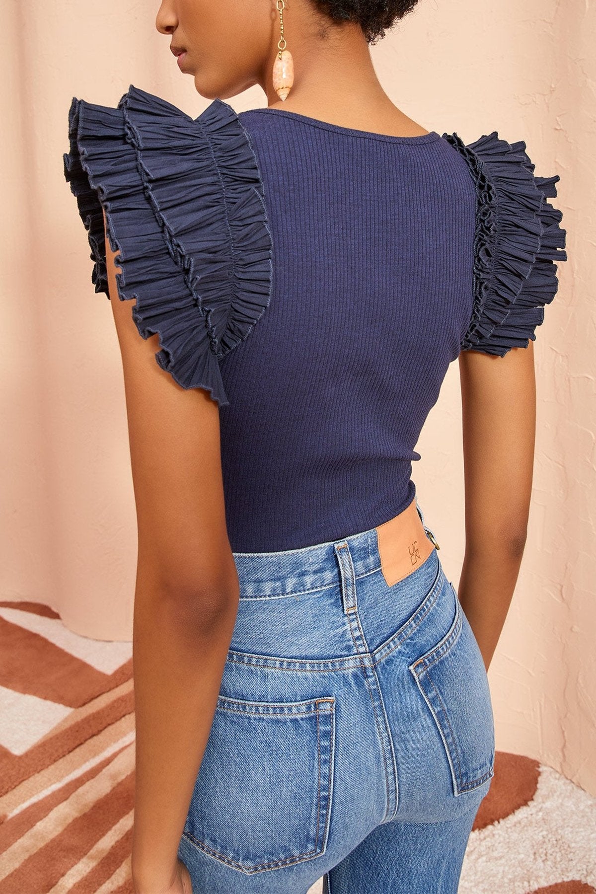 Lilo Ribbed Knit Tank Top in Midnight - shop-olivia.com