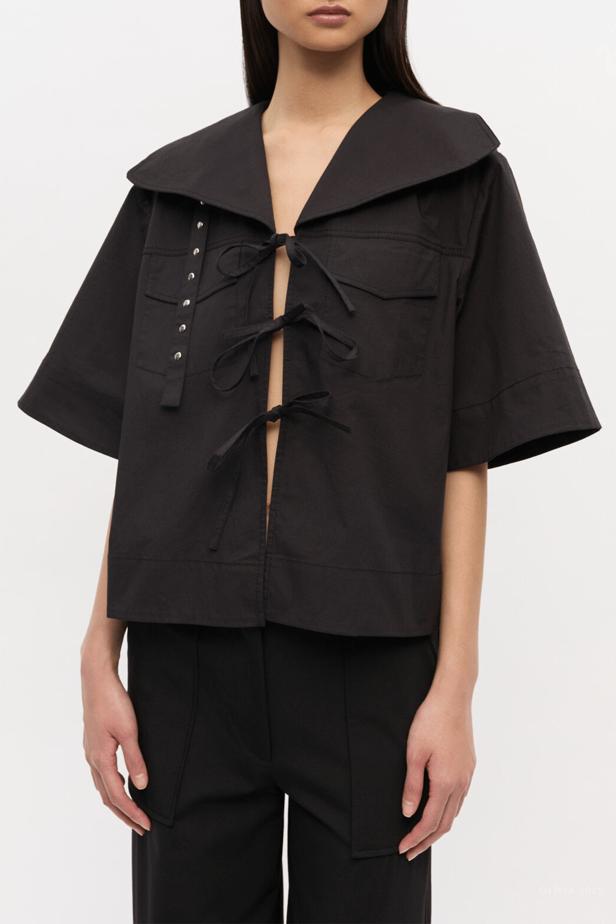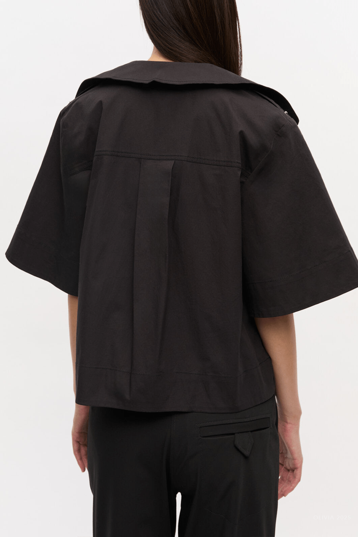 Stretch Cotton Cowl-Neck Blouse by GANNI