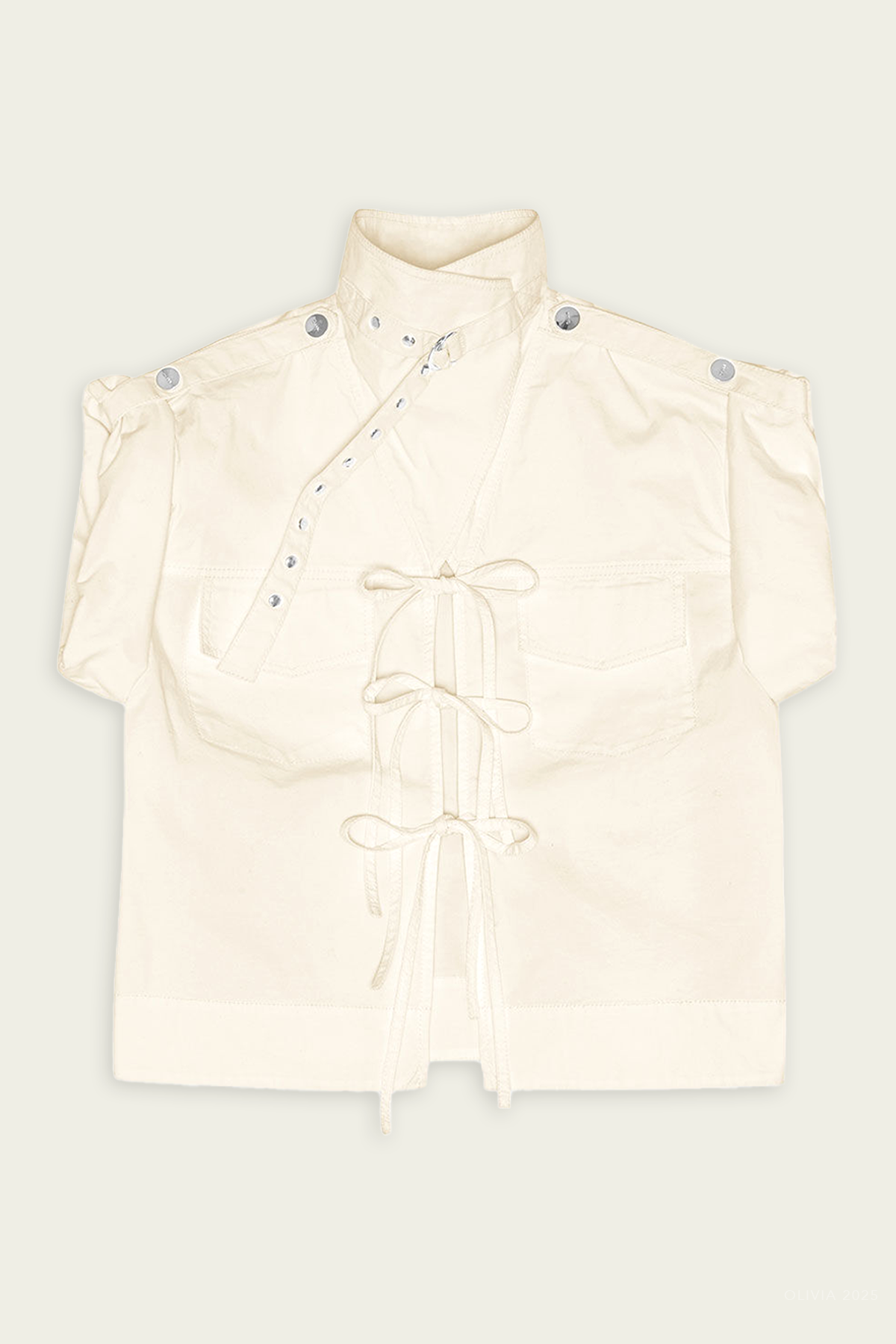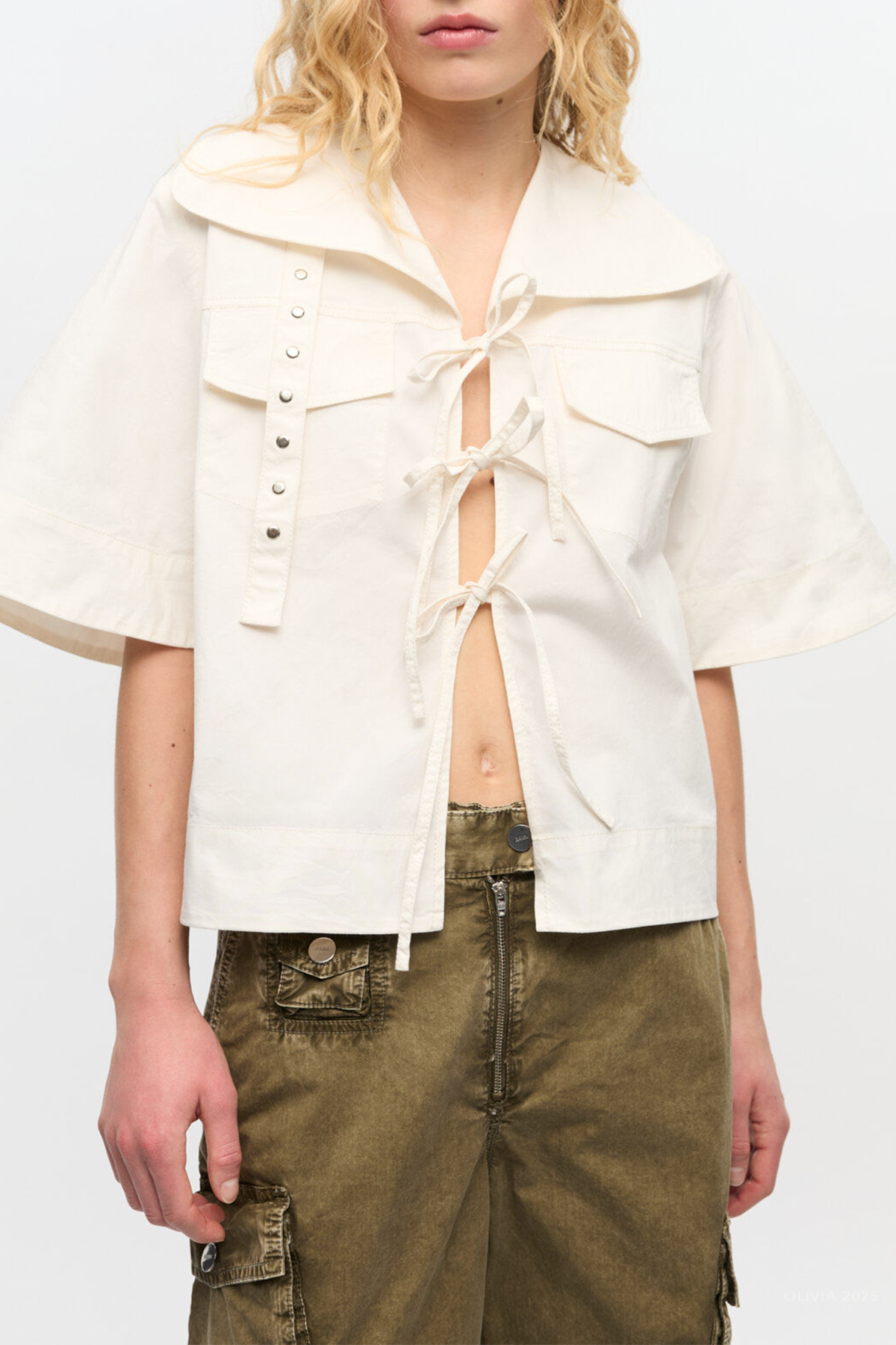 Stretch Cotton Cowl-Neck Blouse in Egret